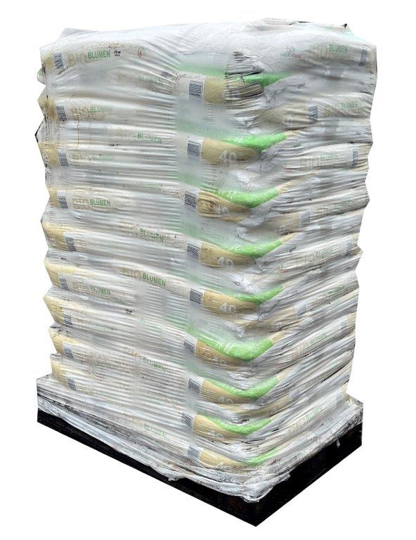 Unsere Bio-Blumenerde ist in praktischen 40-Liter-Säcken erhältlich und wird auf einer Palette mit 54 Säcken geliefert. Das macht sie zur idealen Wahl für alle, die größere Mengen an Blumenerde benötigen, sei es für einen professionellen Einsatz oder für den privaten Gebrauch.