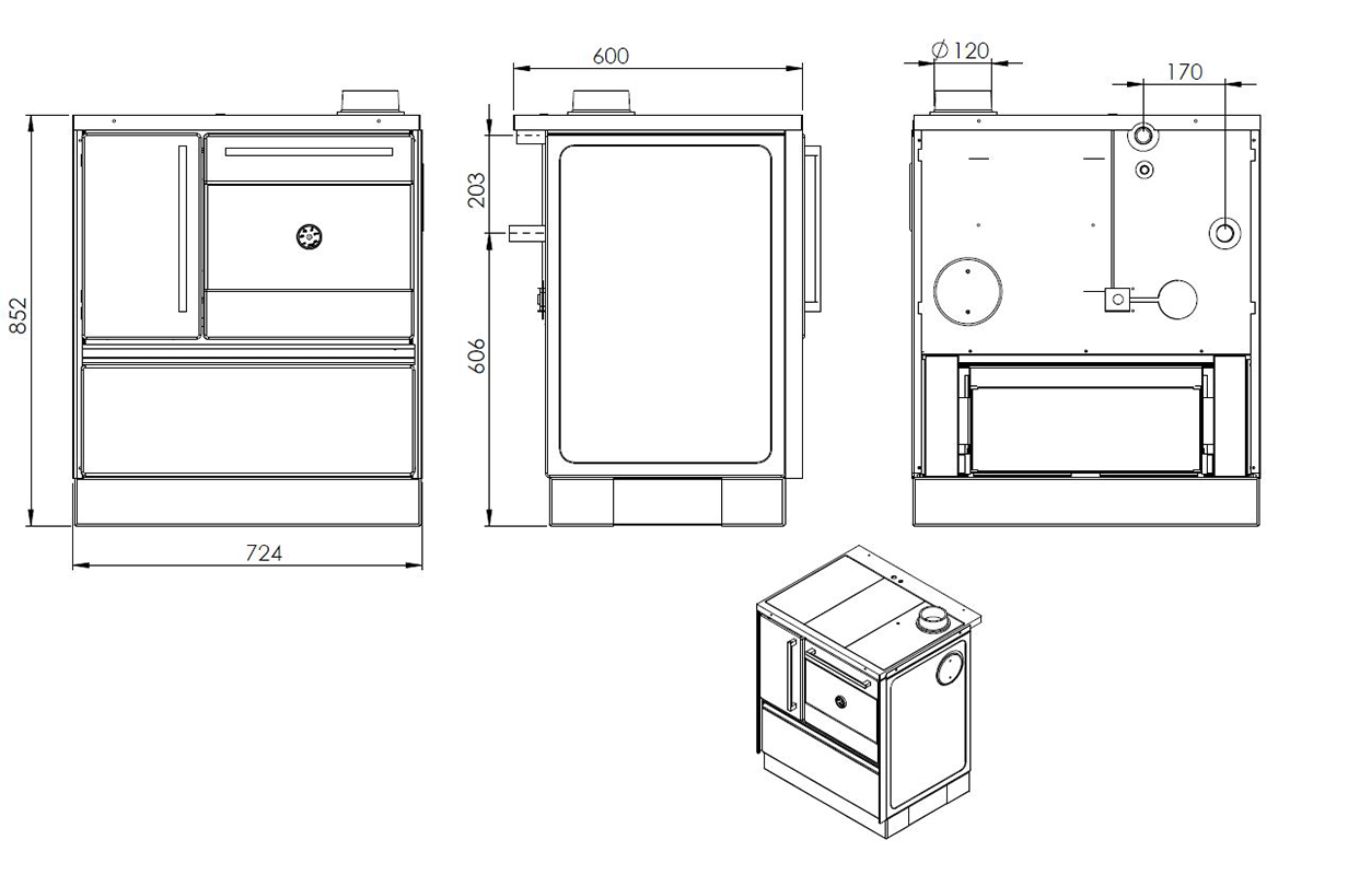 - Maße: (B x H x T in mm): 724 x 852 x 600