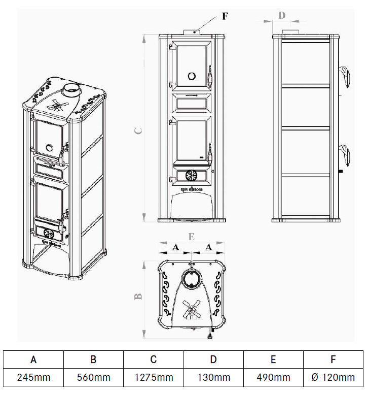 - Stauraum im unteren Teil des Ofens: genug Platz für Holzscheite, Briketts, Anzünder, Feuerzeuge etc.