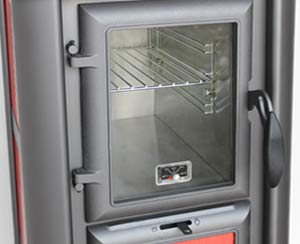 - Tür und Glasscheibe sind sorgfältig gedichtet. Der Ofen darf auch an mehrfachbelegten Schornsteinen angeschlossen werden.