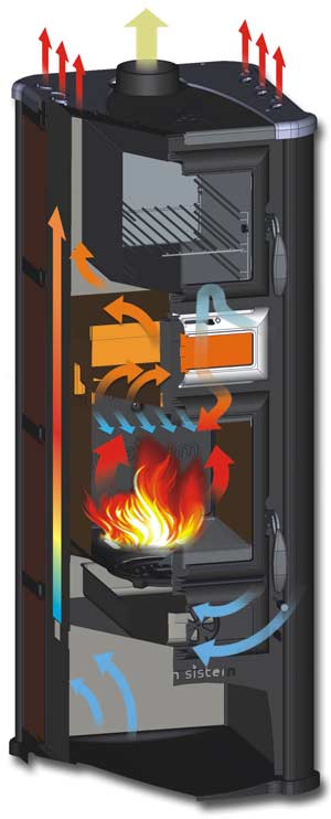 - Die Kombination aus Konvektions- und Strahlungswärme schafft ein angenehmes Raumklima. Die bei der Verbrennung freigesetzte Wärme wird optimal in den Raum abgegeben anstatt durch den Schornstein nach draußen zu verschwinden.