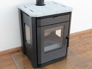 - Die Abdeckplatte aus Speckstein speichert Wärme und sorgt für ein besonders edles Erscheinungsbild.